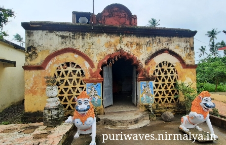 This temple is situated within the precinct of Jagannath Ballava Matha, behind the Jagannatha Ballava Byayama Krida Parisada, Dandimala Sahi, Puri. The presiding deity is a colossal figure of Hanuman standing over a monster.