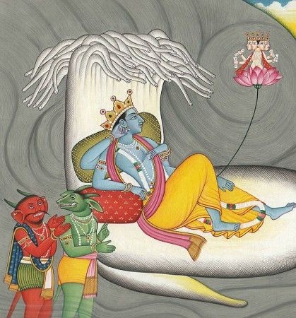 ମହାପ୍ରଳୟ ପରର ଅଥଳ ଜଳରାଶି, ନିଶବ୍ଦ ଓ ଅନ୍ଧକାରର ସାମ୍ରାଜ୍ଯ । ଘୋର ଯୋଗ ନିଦ୍ରାରେ ଶାୟିତ ବିଷ୍ଣୁ । ବିଷ୍ଣୁଙ୍କ ନାଭି କମଳରୁ ଜନ୍ମିତ ବ୍ରହ୍ମା, ଧ୍ଯାନରେ ଥାଇ ଜାଣି ପାରିଲେ ବିଷ୍ଣୁଙ୍କ କର୍ଣ୍ଣ ମଇଳାରୁ ଜନ୍ମ ନେଲେ ଦୁଈଟି ପ୍ରଚଣ୍ଡ ଓ ପ୍ରଭାବଶାଳି ରାକ୍ଷସ । ଦେବୀ ଭାଗବତ ଅନୁଯାୟି ଦୁଇ ରାକ୍ଷସ ନାମ ଥିଲା ମଧୁ ଓ କୈଟଭ ।