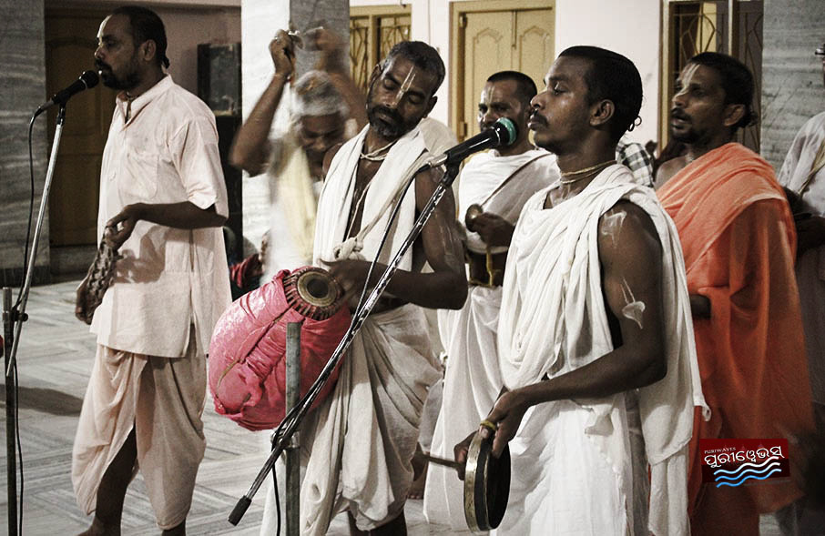 ସେଠାରୁ ଚାଲିଗଲେ । । ପଣ୍ଡାଙ୍କ ସ୍ତ୍ରୀ ମନଖୁସିରେ ରୋଷେଇ ବାସ ସାରି ସ୍ବାମୀଙ୍କୁ ଗମ୍ଭୀରା ଭିତରୁ ଭୋଜନ କରିବାକୁ ଡାକି ବାରୁ ସେ ଆଶ୍ଚର୍ଯ୍ୟ ହେଲେ । ଭୋଜନ ପୁଣି କିପରି ଆସିଲା ? ଏପରି ଭାବି ଭାବି ଗମ୍ଭୀରା ଭିତରୁ ବାହାରି ଆସି ଦେଖନ୍ତି ତ ତାଙ୍କ ଘର ନାନା ପ୍ରକାରର ଖାଦ୍ୟପଦାର୍ଥରେ ପରି ପୂର୍ଣ୍ଣ ହୋଇଯାଇଛି । ସେ ଚକିତ ହୋଇ ଚାହିଁ ଥାଆନ୍ତି । ସ୍ତ୍ରୀ କହିଲେ – ଆହେ ! ତୁମେ ଏମିତି ଚାହିଁଛି କ’ଣ ? ତୁମର ସଖା ପରା ଏ ସାମଗ୍ରୀ ପଠାଇଛନ୍ତି । ଜଣେ କଳା ମୁଚୁମୁଟୁ କିଶୋର ବୟସର । ଗୋପାଳ ଭାରୁଆ ଏସବୁ ଆଣି ଦେଇଛି । ତାକୁ ଭୋଜନ କରିବାକୁ ନେହୁରା ହେଲି । । ସେ ମୋତେ ତା’ ଜିଭ ଦେଖେଇ ଦେଲା । । ତା’ର ଜିଭ ତିନି ଜାଗାରେ ଖଣ୍ଡିଆ ହୋଇ ରକ୍ତ ଜର ଜର ହୋଇଥିଲା । ତେଣୁ ସେ କିଛି ଖାଇ ପାରିବ ନାହିଁ ବୋଲି କହିଲା । ଆଉ କହିଲା ସଂସୀର ଯାକର ଜଞ୍ଜାଳ ତାକୁ ଲାଗିଛି । ତେଣୁ ସେ ଚାଲିଗଲା । ଗୀତାପଣ୍ଡା ସବୁକଥା ଶୁଣି ଏହା ଯେ ପ୍ରଭୁ ଶ୍ରୀଜଗନ୍ନାଥଙ୍କର ଲୀଳା ଏକଥା ବୁଝି ପାରିଲେ । ଆନନ୍ଦ ଗଦଗଦ ହୋଇ ସେ ସ୍ତ୍ରୀଙ୍କୁ କହିଲେ – ଆଗୋ ତୁମେ ଅତ୍ୟନ୍ତ ସୌଭାଗ୍ୟବତୀ । ତୁମର ଜୀବନ ଧନ୍ୟ ହୋଇଗଲା । ଯାହାଙ୍କୁ କୋଟି କୋଟି ବର୍ଷ ଧରି ମୁନି, ଋଷିମାନେ ଜପ, ତପ କରି ଦର୍ଶନ କରିପାରି ନାହାଁନ୍ତି, ତୁମେ ତାଙ୍କୁ ଚର୍ମଚକ୍ଷୁରେ ଦର୍ଶନ କରିପାରିଲ । ତାଙ୍କ ସହିତ କଥାବାର୍ତ୍ତା ମଧ୍ୟ ହେଲ । ଧନ୍ୟ ତୁମେ, ଏପରି କହି ପଣ୍ଡା କୃତ୍ୟକୃତ୍ୟ ହେଲେ । ତାଙ୍କ ସ୍ତ୍ରୀ ଏ ସବୁ କଥା ବୁଝିପାରିଲେ ନାହିଁ । ତେଣୁ ପଣ୍ଡାଏ ଖୋଲି କରି କହିଲେ – ସେହି ଗୋପାଳ ବେଶ ଧାରୀ ଭାରୁଆ ହେଉଛନ୍ତି ଆଦି ନାରାୟଣ