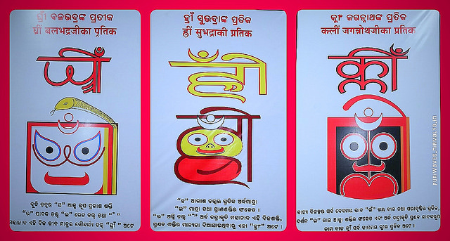 In the Tantric tradition Jagannatha is worshipped with the Bija Mantra Klim and sits on the Mahakali Yantra as Mahakalika, similarly Balabhadra is worhsipped with the Bija Mantra Ghrim and sits on the Tara Yantra as Ugratara, similarly Subhadra is worshiped with the Bija Mantra Hrim and sits on the Bhuvaneswari Yantra as Bhuvaneswari.