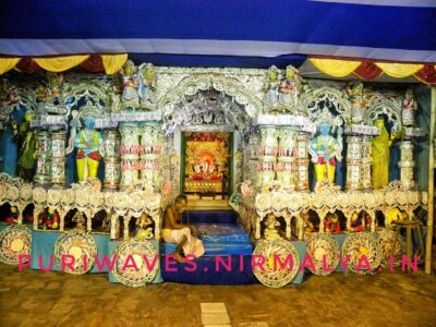 It is celebrated for seven days from the Shrabana Shukla Dashami up to Pratipada. Madanmohan, the representative image of Jagannath alongwith Laxmi and Vishwadhatri are placed on a swing on the Muktimandap (called Jhulan Mandap). On the fullmoon day i. e. Jhulan Purnima or Gamha Purnima, the birthday of Lord Balabhadra is celebrated in the temple. In Puri, for the pleasure of Lord Jagannath’s utsav vighraha (Madan-mohan ji, this festival is celebrated from Shravana Shukla Dashami (10th Tithi/phase of the Moon of the light fortnight) until Pratipada (1st tithi of the dark), a period of seven days. Sri Madanmohan, Jagannath’s representative deity as well as Laxmi and Vishwadhatri are placed on a decorative wooden swing on Muktimandap (Jhulanmandap). There, worshippers have a chance to swing the Lord, thus entering into His pastimes. On the day of the full moon (Gamha Purnima or Jhulan Purnima), Lord Balabhadra’s appearance day is celebrated, even this is also called as Balabhadra Purnima.