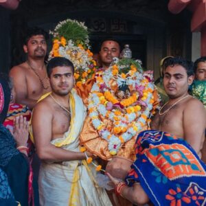 Rishi Panchami, observed on Bhadraba Shukla Panchami, holds special significance. This brata, observed by Sridevi herself, is dedicated to rectifying mistakes made by women after their menstrual cycle. A legend tells that to absolve such errors, worship to Saptarishi is offered. Following the Sakala Dhupa, Sridevi is palanquined to Markandeswar Mahadev Mandir, where Majana is performed, Baruna puja is offered, and Naivedya is presented to Sapta Rishi. Brata Katha is recited, and the observance concludes with offerings of ripe bananas, fruits, and milk to the Rishis.