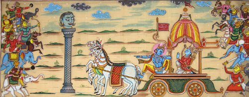 Gita Upadesha – Paata Painting on Tussar Silk Fabric – Folk Art from the Temple Town of Puri (Orissa)