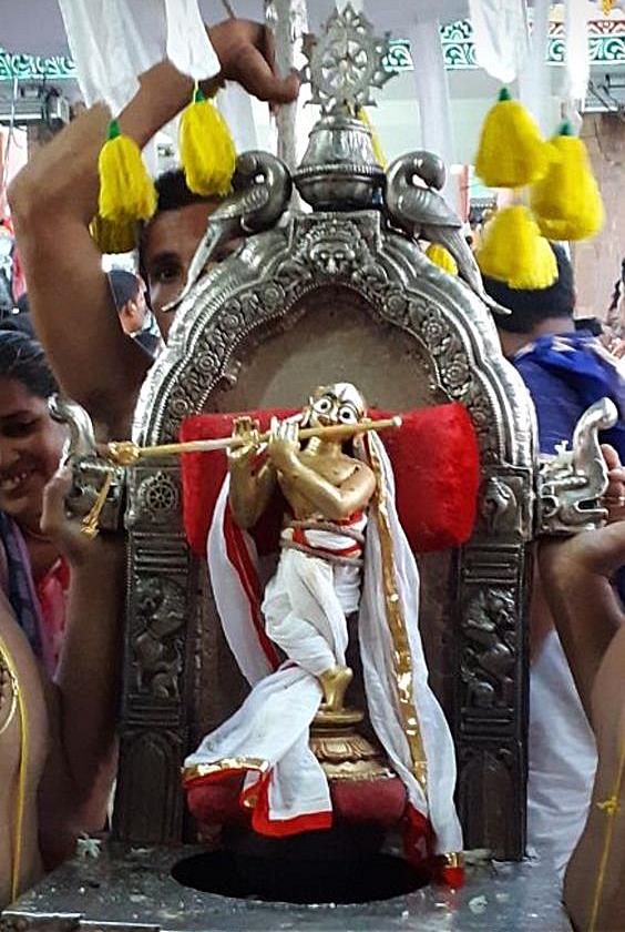 ପବିତ୍ର ଜନ୍ମାଷ୍ଟମୀ ଅବସରରେ ସଂଧ୍ୟାଧୂପ ବେଶରେ ନୂଆ ବୋଇରାଣୀ ପତନି ଲାଗି ସହିତ ୬ ମୂର୍ତ୍ତି ଅଳଙ୍କାର ଲାଗି ହୋଇଥାନ୍ତି । ସଂଧ୍ୟାଧୂପ ସରିଲା ପରେ ଜୟବିଜୟ ଦ୍ଵାର ବନ୍ଦ ହୋଇ ଭଣ୍ଡାର ଦୁଆର ଆଗରେ ପୋଛ ମରାଯାଏ । ପରେ ପଞ୍ଚବର୍ଣ୍ଣି ମୁରୁଜରେ ଜଣେ ପୂଜାପଣ୍ଡା ‘ସର୍ବତ୍ର ଭଦ୍ର ମଣ୍ଡଳ’ ଲେଖନ୍ତି । ଶୁଦ୍ଧସୁଆର ପୂଜା ଠା କରନ୍ତେ ପୂଜାପଣ୍ଡା, ପତିମହାପାତ୍ର, ମୁଦିରସ୍ତ ବିନା ବାକ୍ୟବିନିମୟରେ ବରୁଣ ପୂଜା କରିଥାନ୍ତି । ରୂପା ପଦ୍ମ ପାଖୁଡ଼ା, କୃଷ୍ଣ ଜନ୍ମପଟି ଏବଂ ସୁବର୍ଣ୍ଣ କୃଷ୍ଣ ପ୍ରତିମା ଭଦ୍ରମଣ୍ଡଳ ଉପରେ ରଖାଯାଏ । ଦକ୍ଷିଣ ଘରୁ ମଦନମୋହନ ରତ୍ନ ସିଂହାସନକୁ ବିଜେ କରି ଆଜ୍ଞାମାଳ ପାଇ ଜନ୍ମ ଚକଡ଼ାରେ ବିଜେ କରିଥିଲେ । ଏଠାରେ ଗର୍ଭ ଉଦକ କର୍ମ, ଶୀତଳ ଭୋଗ ପରେ ଦୁଇଜଣ ମହାଜନ ସେବକ ଲୁଗା ଘୋଡ଼ାଇ ହୋଇ ଦେବକୀ ଓ ବସୁଦେବ ଭାବରେ ଶ୍ରୀକୃଷ୍ଣଙ୍କୁ ଜନ୍ମ କରାଇଥାନ୍ତି । ଜନ୍ମନୀତି ଶେଷ ହେବା ପରେ ପ୍ରସାଦ ଲାଗି, ଦୁଧ ଲହୁଣୀ ଓ ଗାଣ୍ଡୁସ ମସଲା ସମର୍ପଣ ପୂର୍ବକ ମଣୋହି ପରେ କର୍ପୂର ଆଳତି ହୋଇ ରୂପା ଥାଳିରେ ମଦନମୋହନ ବିଜେ କରି ବାହାରକୁ ଆସିଥାନ୍ତି । ଜଣେ ସେବକ ଉଗ୍ରସେନ ଭାବରେ ଦଣ୍ଡପ୍ରଣାମ କରିଥାନ୍ତି । ଏହି ସମୟରେ ବେହେରା ଖୁଣ୍ଟିଆ ଠାକୁରଙ୍କ ମସ୍ତକ ଉପରେ ସପ୍ତଫେଣା ବାସୁକୀଙ୍କୁ ଧରି ଚାଲନ୍ତି । ମୁଦିରସ୍ତ ସେବକ ପ୍ରସାଦ ଲାଗି ଓ ବନ୍ଦାପନା କରିବା ପରେ ମଦନମୋହନ ନାଭିକଟା ମଣ୍ଡପ ଠାରେ ଖଟ ଶେଯ ଉପରେ ବିଜେ କରିଥାନ୍ତି ଏବଂ ମହାଜନମାନେ ଦକ୍ଷିଣଘରୁ ରାମକୃଷ୍ଣଙ୍କୁ ଆଣି ଖଟ ଶେଯ ଉପରେ ବିଜେ କରାଇଥିନ୍ତି । ଏହାପରେ ନାଭିଚ୍ଛେଦନ ହୋଇ ପଞ୍ଚାମୃତରେ ମହାସ୍ନାନ, ଶୀତଳଭୋଗ ମଣୋହି ଓ ବନ୍ଦାପନା ପରେ ମହାଜନମାନେ ଠାକୁରମାନଙ୍କୁ ହାତରେ ବିଜେ କରାଇ ଜଗମୋହନରେ ପ୍ରସ୍ତୁତ କରାଯାଇଥିବା ଦୋଳିରେ ବିଜେ କରାଇଥାନ୍ତି। ଏଠାରେ ଶୀତଳଭୋଗ ଛାମୁଁକୁ ଆସିବା ପରେ ପ୍ରସାଦ ଲାଗି, ପୂଜା ଓ ମଣୋହି ହୋଇ ବନ୍ଦାପନା ସରିବା ପରେ ଭିତରେ ପାଣି ପଡ଼ି ବଡ଼ସିଂହାର ଭୋଗ ଛେକ ଆସିବା ମାତ୍ରେ ରାମକୃଷ୍ଣ ରତ୍ନ ସିଂହାସନକୁ ଏବଂ ମଦନମୋହନ ଦକ୍ଷିଣଘରକୁ ବିଜେ କରିଥାନ୍ତି।